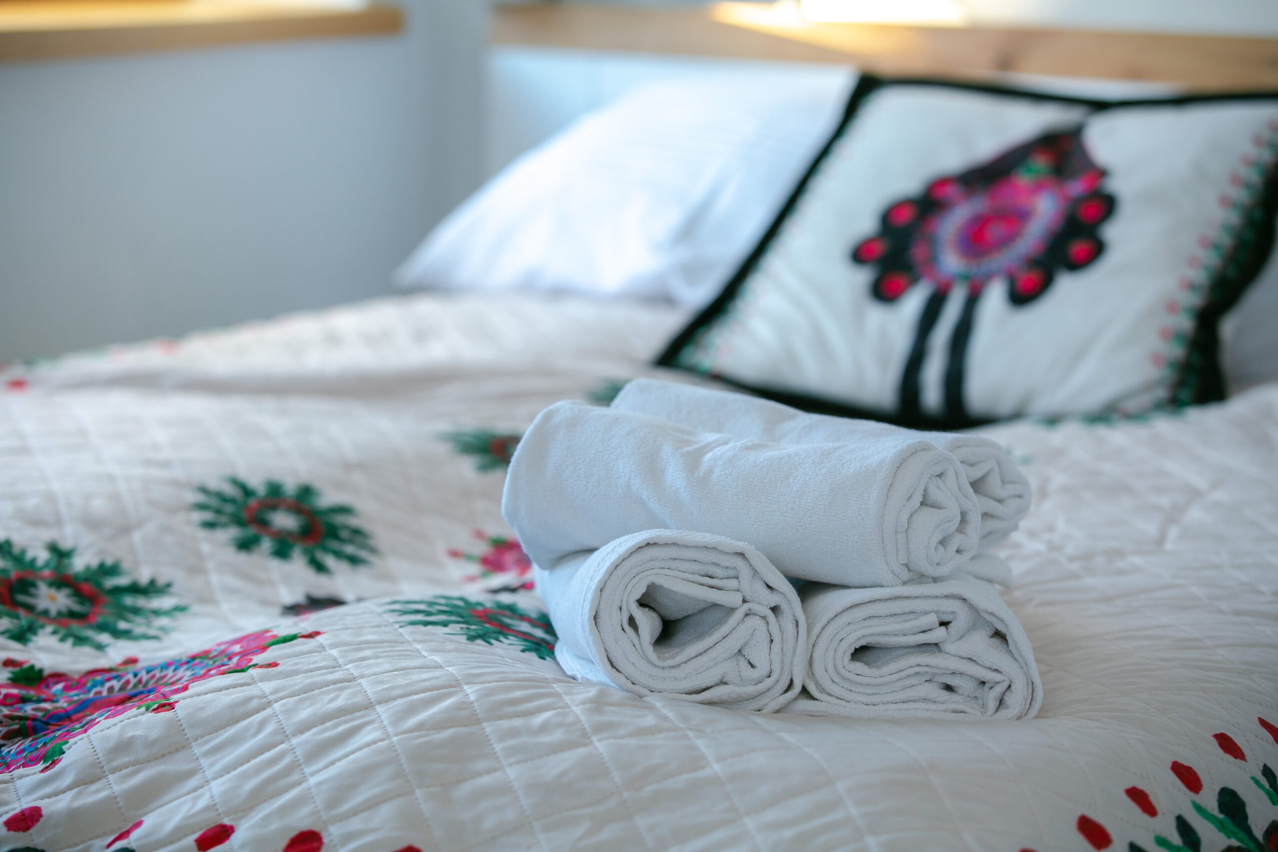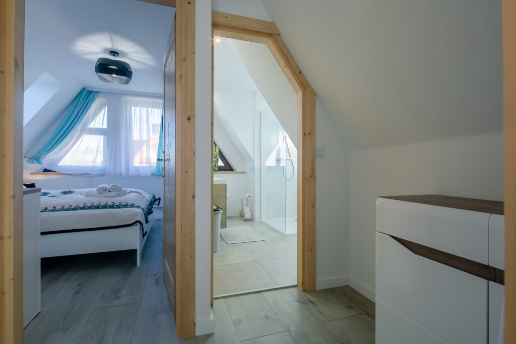 Piętro: 2 osobne, zamykane sypialnie (jedna z balkonem), łazienka
