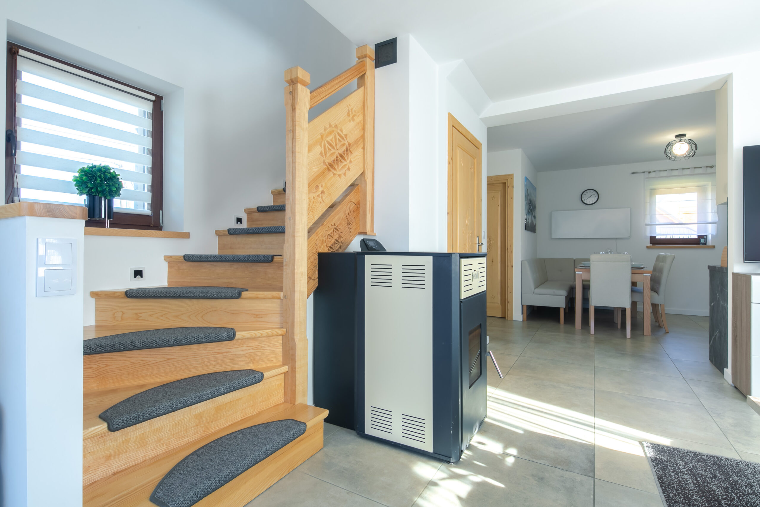 Domek ma powierzchnię ok. 70 m2 i składa się z 2 kondygnacji. Na parterze znajduje się wyjście na taras z meblami ogrodowymi i grillem do dyspozycji naszych gości – idealne miejsce na wieczorny wypoczynek z najbliższymi! Podczas chłodniejszych dni, w salonie na gości czeka prawdziwy kominek, który stworzy niepowtarzalny klimat i rodzinną, ciepłą atmosferę.